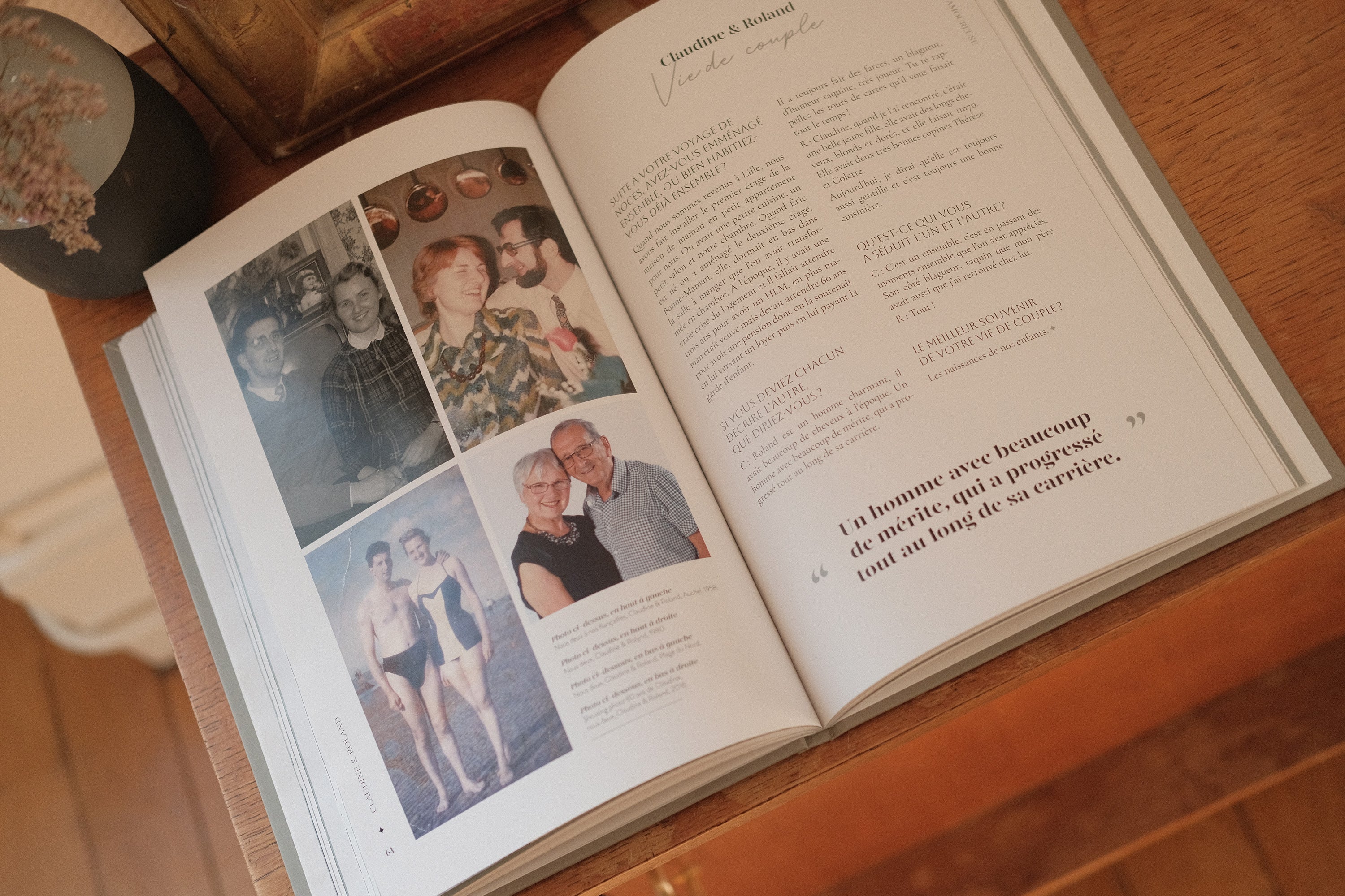 Offert à mes parents, nous avons apprécié passer du temps ensemble à discuter et à construire le livre petit à petit. Cela a été l’occasion pour moi de redécouvrir certains moments clés de leur vie et de se replonger dans les albums photos. Le produit final est beau et ils sont fiers de le montrer à leurs amis et au reste de la famille.